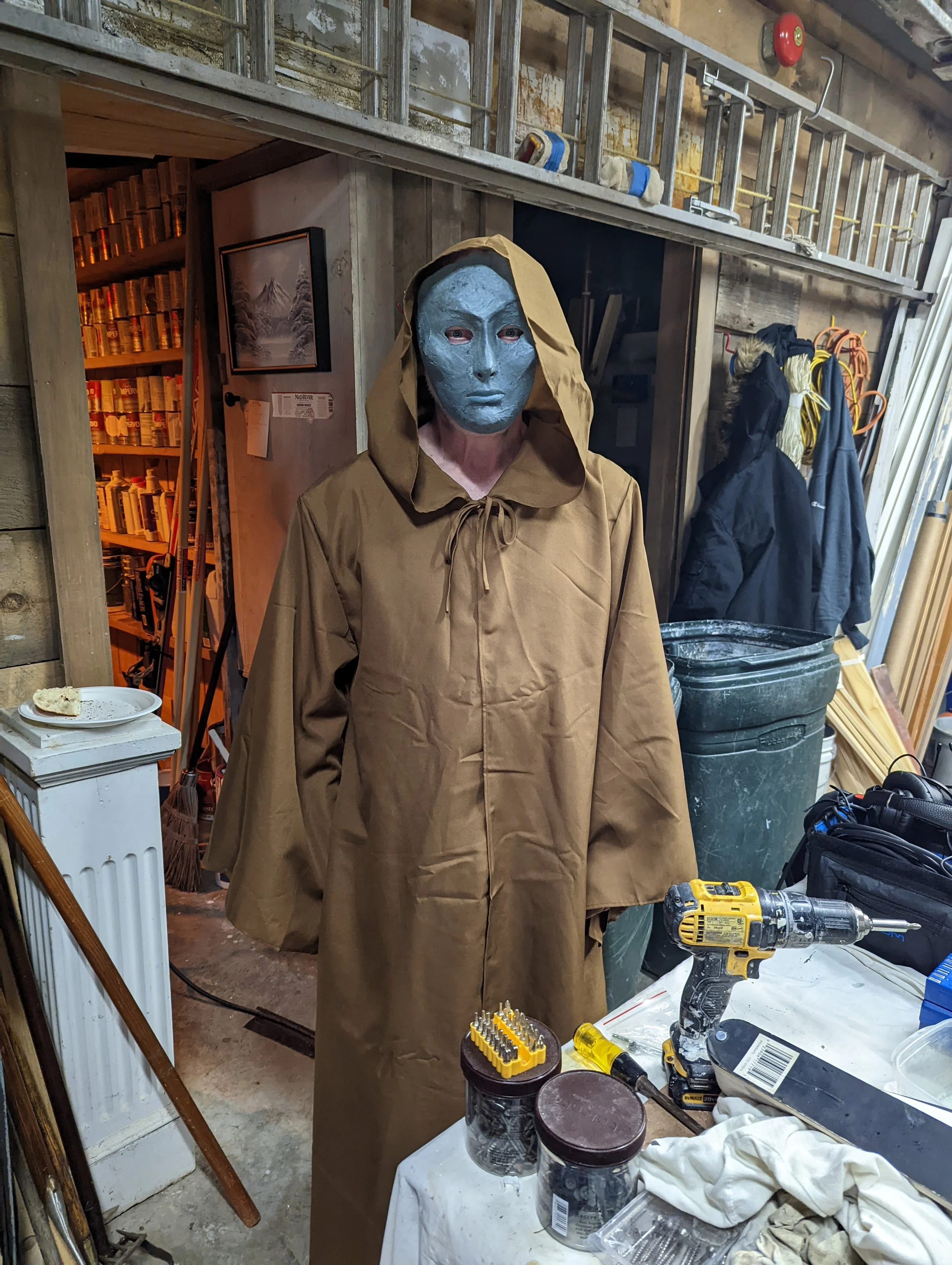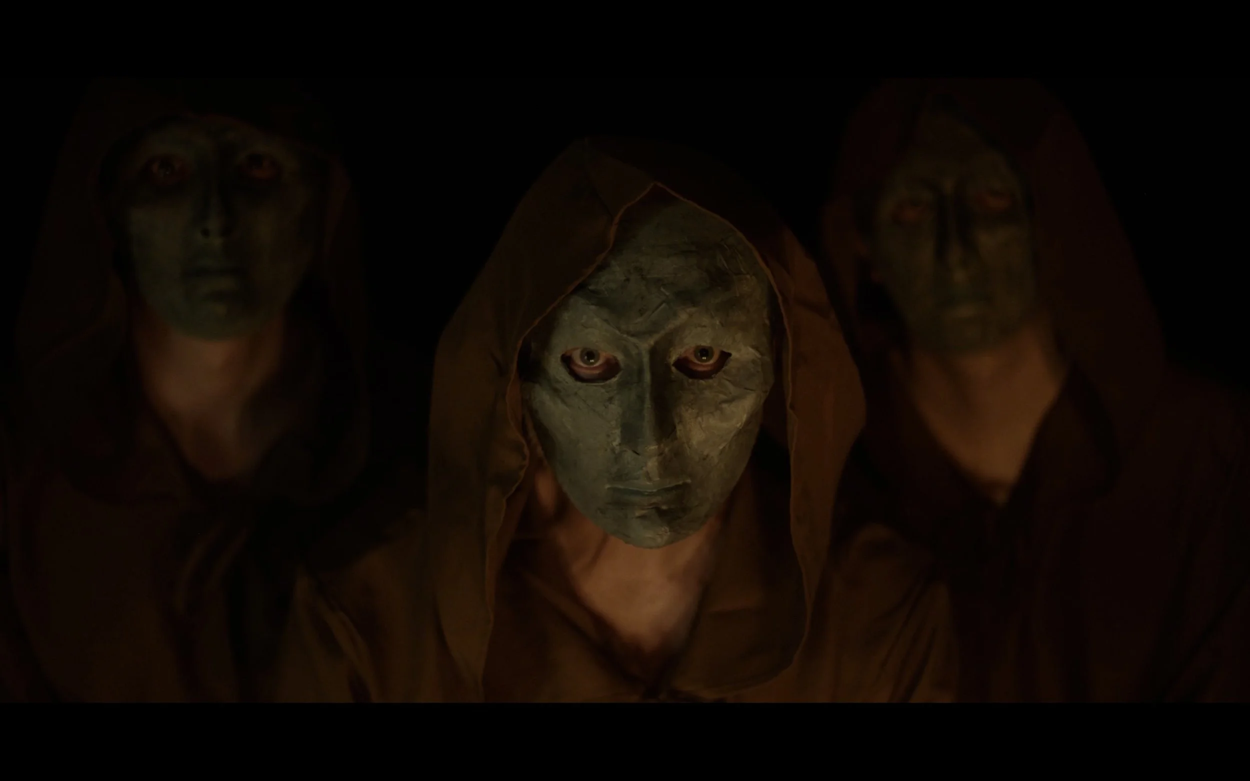 The most exciting part of the process had to be the cult ceremony scenes. After much searching for the perfect carved idol for the cult to worship, I ended up sculpting and painting one myself (above), as well as the stone colored masks that the cult members wore above) for the most haunting affect.