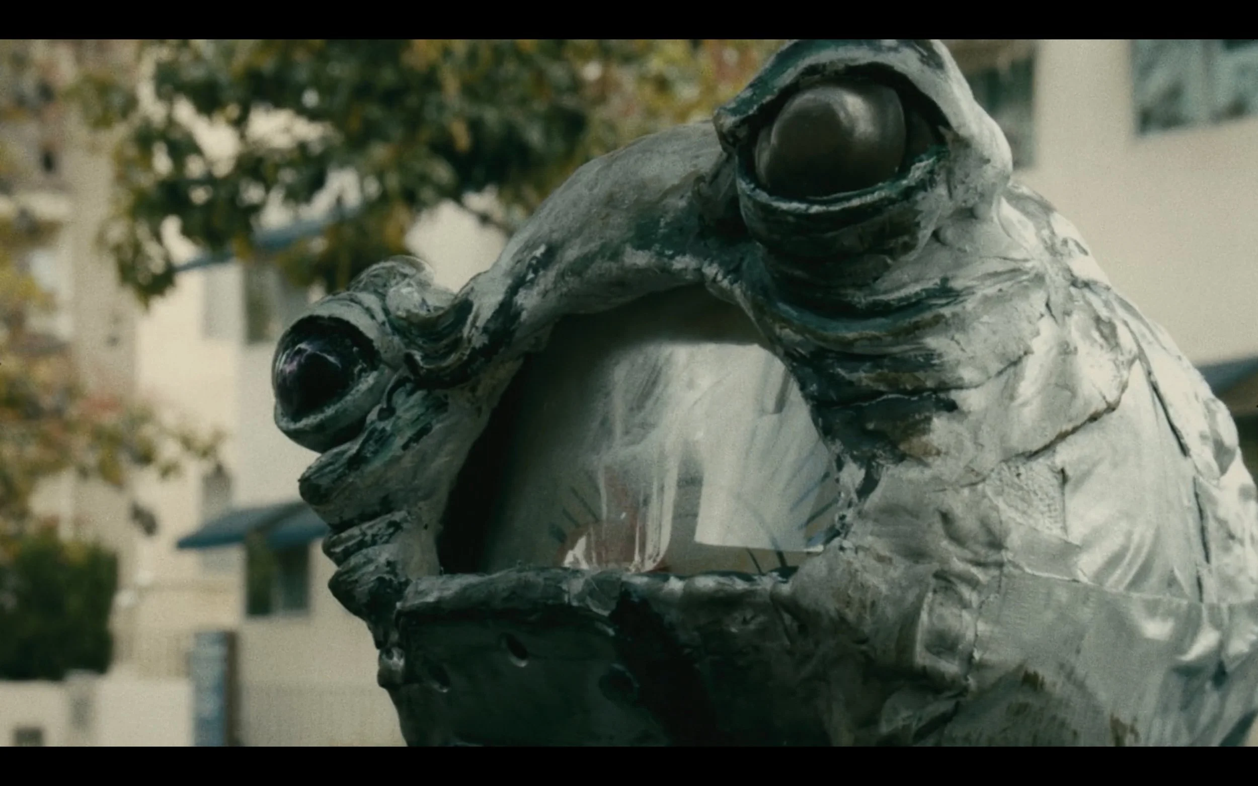 A hand puppet was then sewn and given sharp plastic teeth, before being handled by a puppeteer through the gumball-slot mouth, and voila! He came alive.